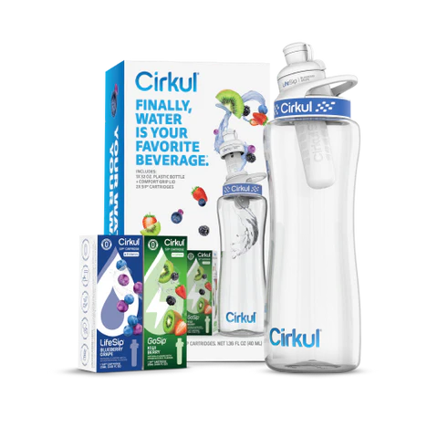 • 32oz. Plastic Bottle Starter Kit & Navy Comfort Grip Lid